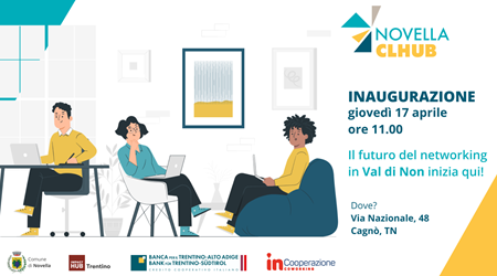 Il progetto, nato dalla volontà di trasformare l’ex municipio di Cagnò in un luogo aperto e funzionale, rappresenta una risposta concreta alle sfide dello spopolamento, della rigenerazione urbana e del lavoro agile nei contesti periferici. Una nuova opportunità rivolta alla comunità locale, ma con uno sguardo rivolto verso network regionali ed internazionali: Novella CLHUB sarà infatti connesso al volutamente omonimo spazio di coworking CLHUB di Palazzo Benvenuti - sede della Banca per il Trentino Alto Adige - Bank für Trentino-Südtirol - ed inserito nella rete globale di Impact Hub Network, presente in oltre 100 città nel mondo.